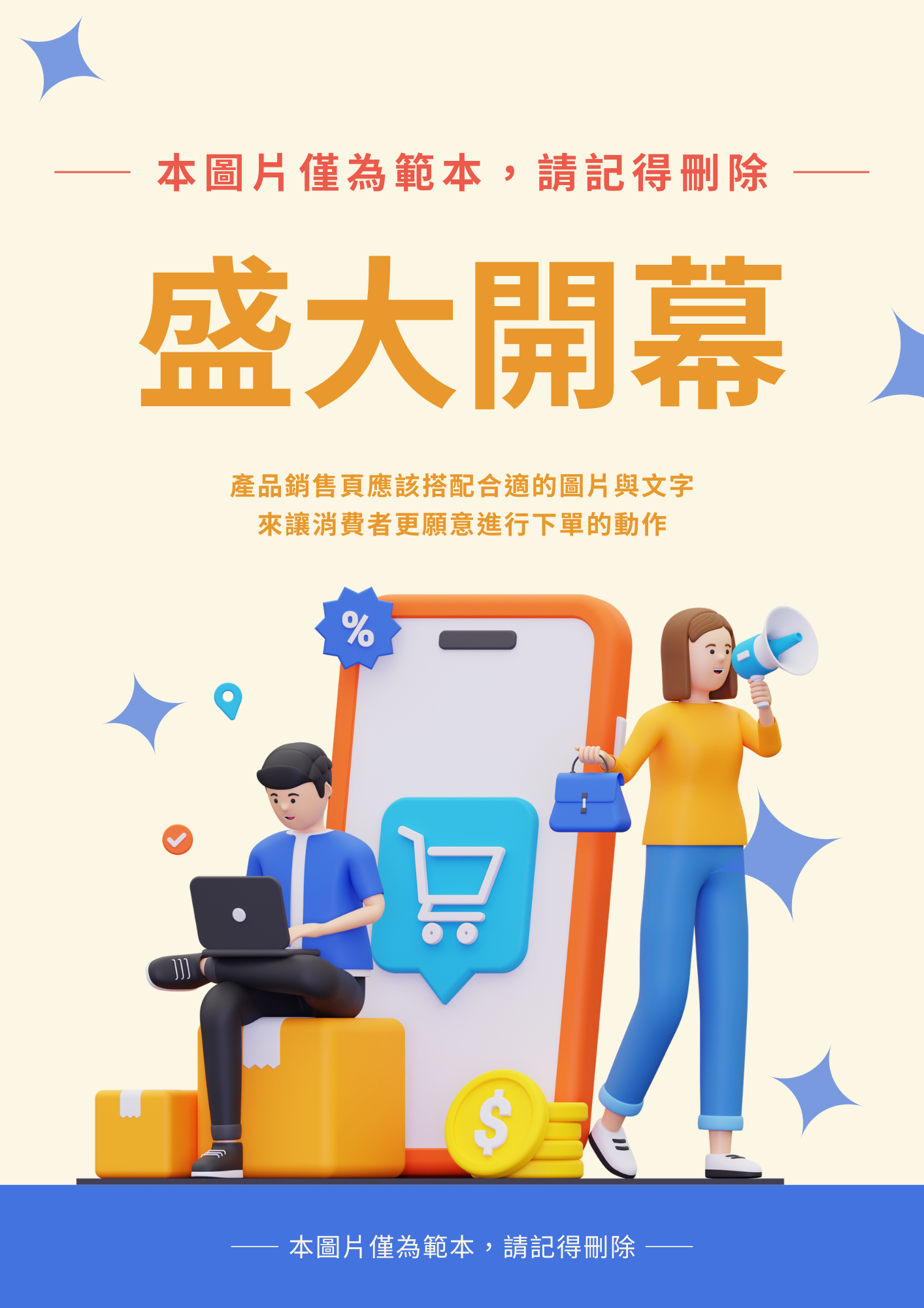 特價中 🔍 簡單商品範例 (精選 – 無圖庫)NT$999 原始價格:NT$999。NT$699目前價格:NT$699。 這是一款展示用的範例商品,為展示電子商城內容而設計,展示如何進行清晰簡單的商品描述,並且以條列形式說明其主要優點。 商品特色: 高品質材質:採用優質材質製作,保證產品耐用且安全。 實用設計:設計符合現代需求,無論家庭或辦公使用都能發揮出最佳效果。 多功能應用:適合多種場景使用,滿足您的不同需求。 環保選擇:產品製造過程考慮環境影響,使用可持續材料。 時尚外觀:簡約且時尚的外觀設計,適合各種風格空間。 簡單商品範例 (精選 - 無圖庫) 數量 加入購物車 描述 這邊是你可以放些商品圖片或是文字介紹的區塊 請記得將以下這些內容刪掉換上專屬於你的產品資訊 相關商品 特價中 組合商品範例 (精選) NT$699 查看商品 特價中 可變商品範例 (精選) NT$999 原始價格:NT$999。NT$699目前價格:NT$699。 選擇規格 此產品有多種款式。 可在產品頁面選擇選項 特價中 外部商品範例 (精選) NT$999 原始價格:NT$999。NT$699目前價格:NT$699。 馬上購買 特價中 簡單商品範例 (精選 – 有圖庫) NT$999 原始價格:NT$999。NT$699目前價格:NT$699。 加入購物車